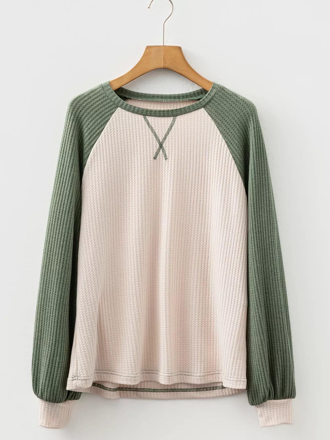 Waffle Color Block Raglan Sleeve Top